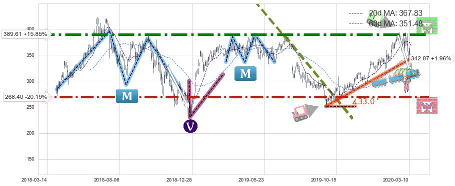 ♘ 阻力价格位389.61,可信任强度96.68%,距离最后交易2020-03-13形成的收盘价格336.30相差 +15.85%
