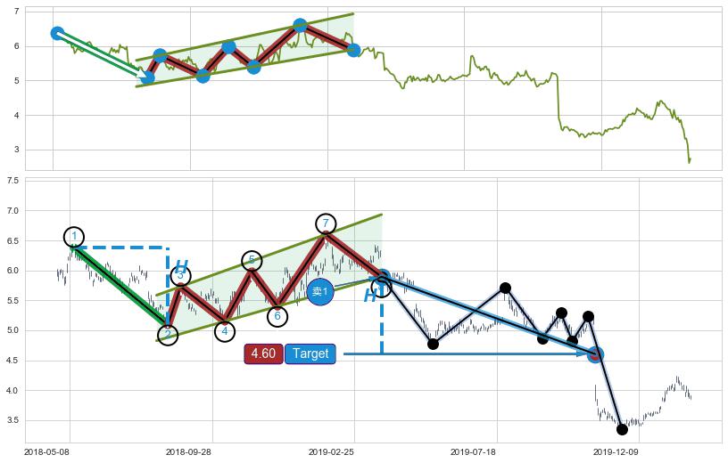 2018-09-12: 第一阻力位5.25有效抑制了下跌浪,成功阻止了价格的继续下跌。