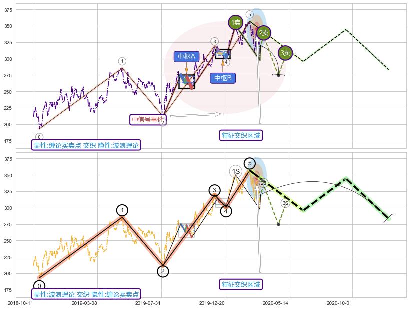 ➣ 缠论买卖点:猜想2卖持续蓄力下跌至3卖 → 下跌 → 风险信号 → 小趋势跟踪