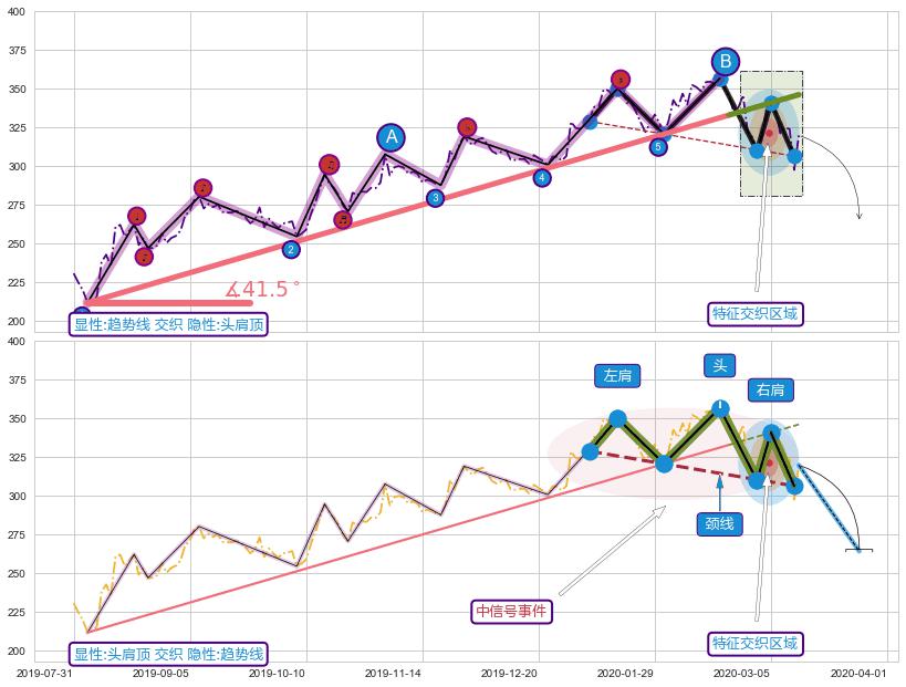 ➢ 头肩顶属【中级别信号事件】趋势线属【长级别信号事件】中长周期组合信号事件,中长事件长度比38.03%