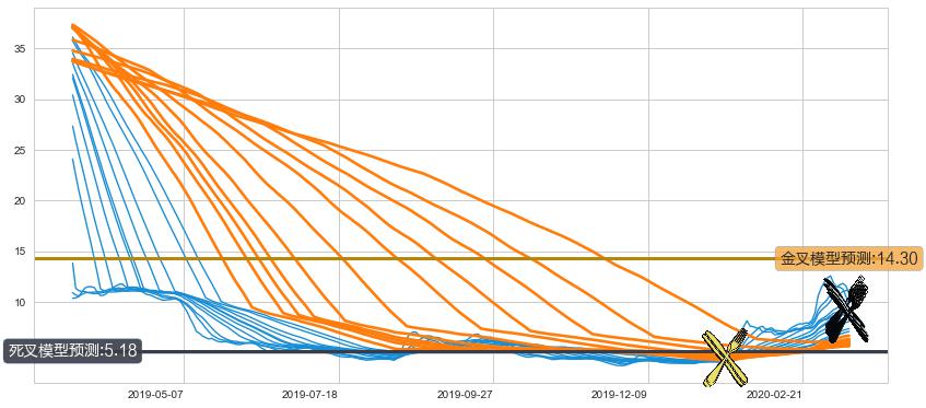 ➣ 40小时均线于(2020-03-12: 8.50)形成【死叉】基于【死叉历史模型】预测死叉后最低波谷价格: 4.23, 死叉后最低价格8.41,尚未达到预测最低波谷价格, 预期继续下跌
