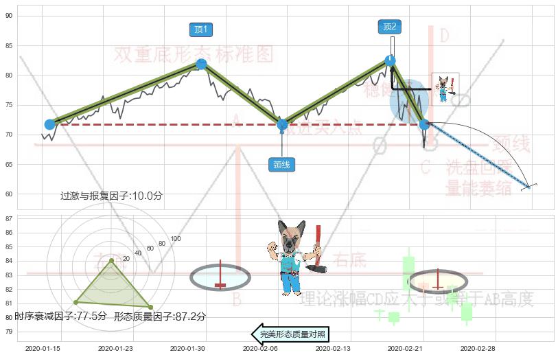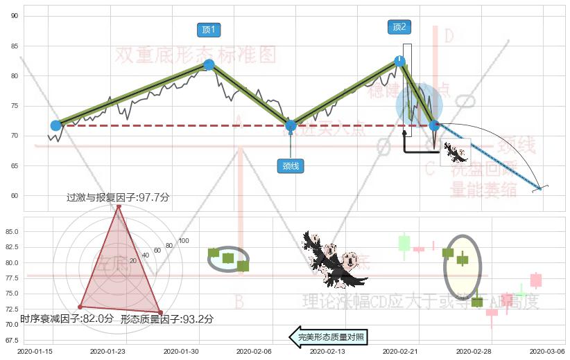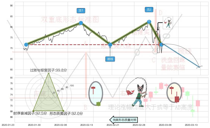 ➢ 【卖1】: 激进型 卖点→(2020-03-12: 71.73 )形成突破双重顶【反转】形态