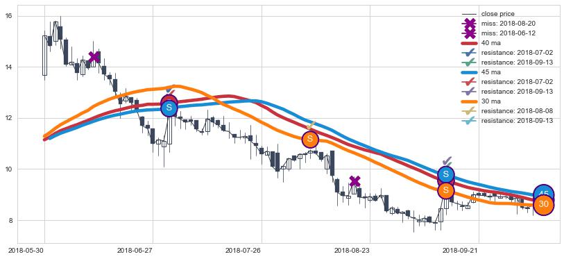 ➢ 最优均线组合共正确确认支撑阻力信号5处,正确确认率 55.56%