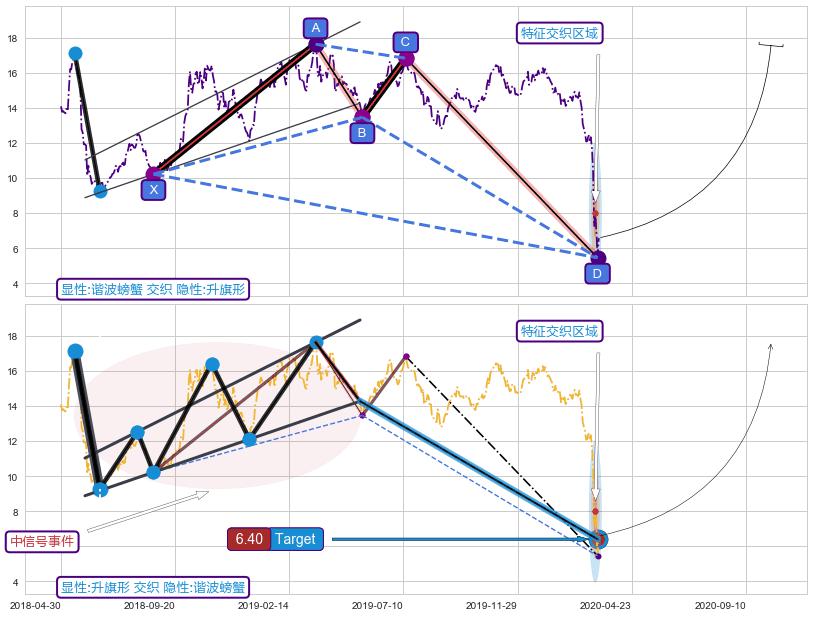 ➢ 升旗形属【中级别信号事件】谐波螃蟹属【长级别信号事件】中长周期组合信号事件,中长事件长度比64.36%