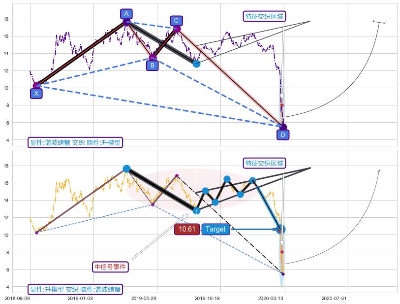 ➢ 升楔型属【中级别信号事件】谐波螃蟹属【长级别信号事件】中长周期组合信号事件,中长事件长度比53.33%