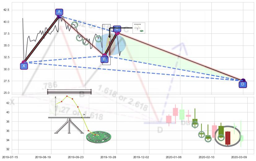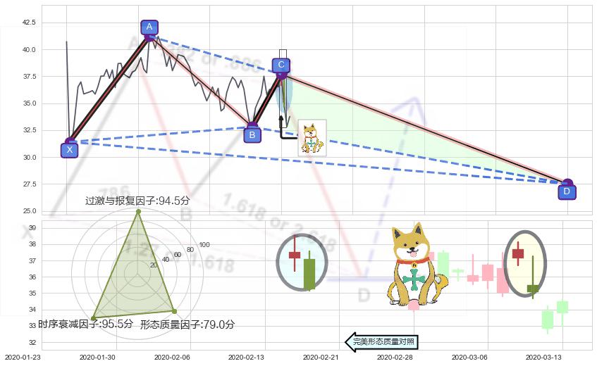 ➣ 未完成【蝴蝶】形态起点X: 2019-11-20, 已到达C点: 2020-03-10, 预测最终D点: 2020-07-28, 共174交易日
