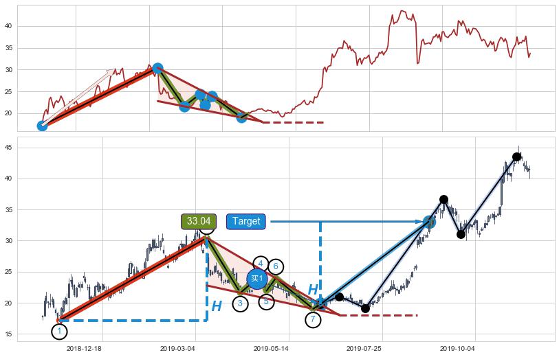 ➣ AI预测: 假定反转启动后, 第❶目标位置(2020-09-03, 32.75)