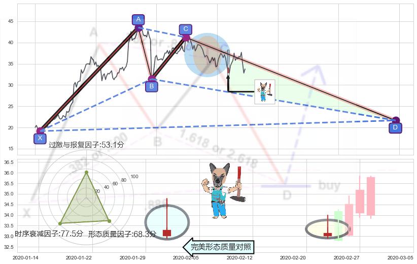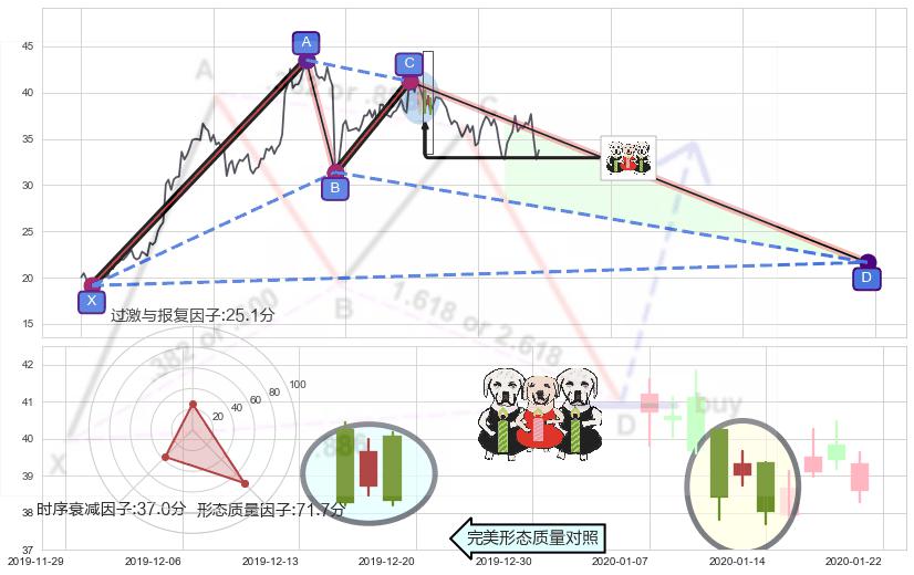 ➢ 下跌孤独十字星 🔜 谐波蝙蝠c拐点下跌阻力 综合量化分数:36.79 【偏空】