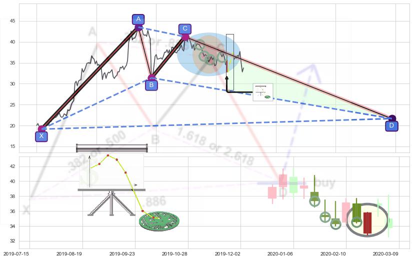 ➣ 谐波蝙蝠:猜想c点拉升接近b点后强阻力来临下沉下跌(均值回复)