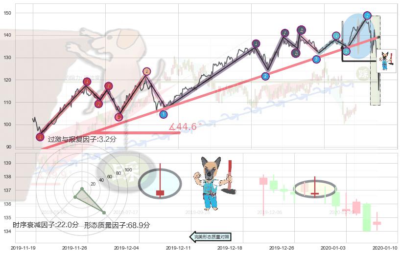➢ 🕰 价格走势在2020-02-18至2020-02-24期间形成吊颈线(上吊线),残存影响值:-4.60
