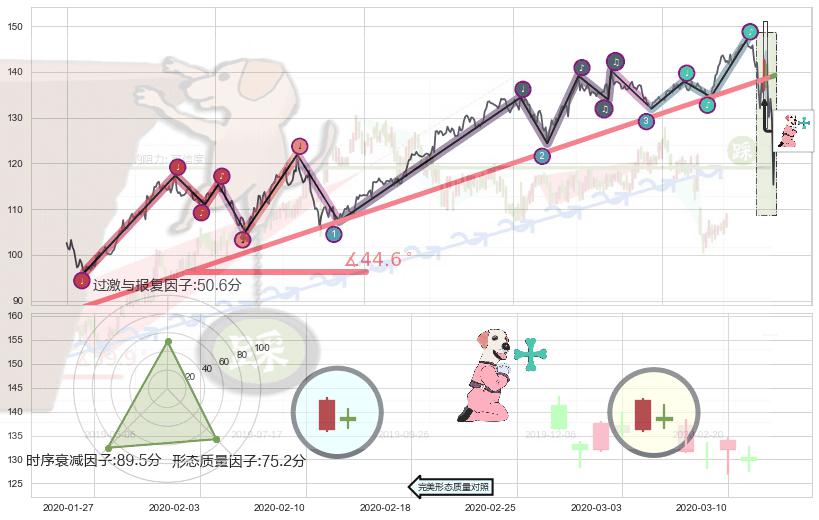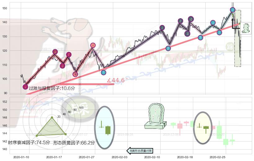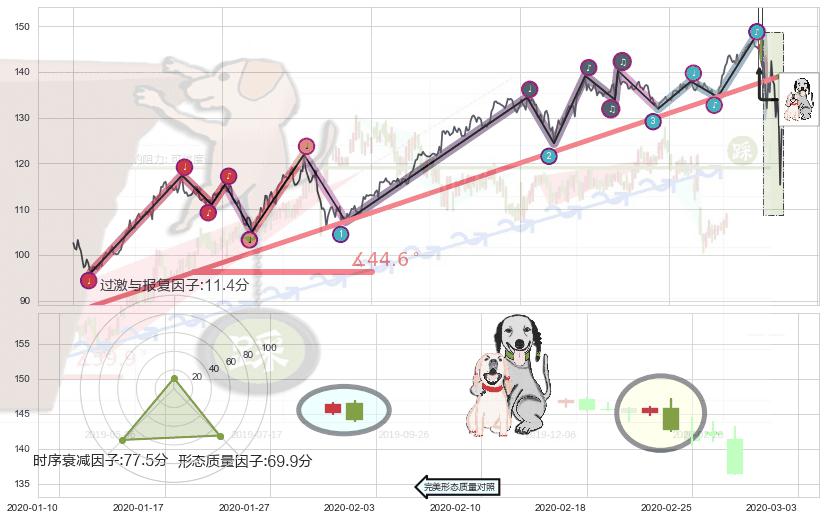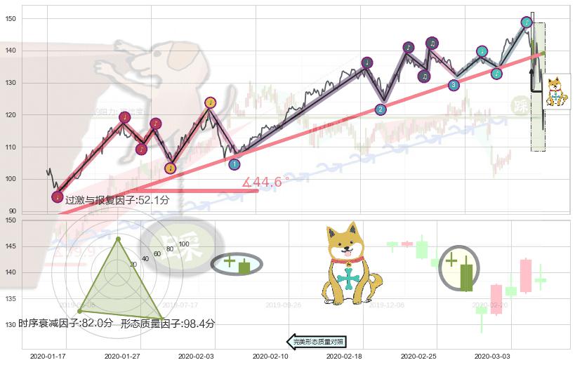➢ 2018-05-09-2020-03-11上升趋势存在反转[风险],其原上升趋势的支撑位(139.21)已破位[强阻力信号],原上升趋势角度: 44.6˚