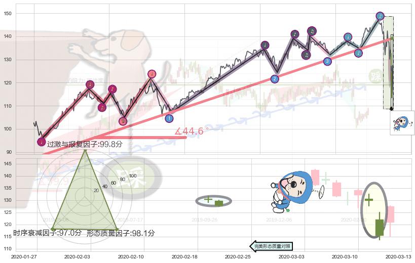 ➣ 2018-05-09-2020-03-11上升趋势存在反转[风险],其原上升趋势的支撑位(139.21)已破位[强阻力信号],原上升趋势角度: 44.6˚