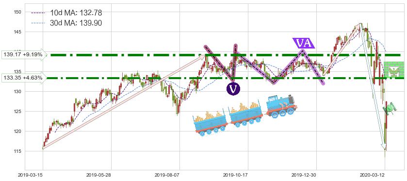 ♘ 阻力价格位133.35,可信任强度73.93%,距离最后交易2020-03-13形成的收盘价格127.45相差 +4.63%
