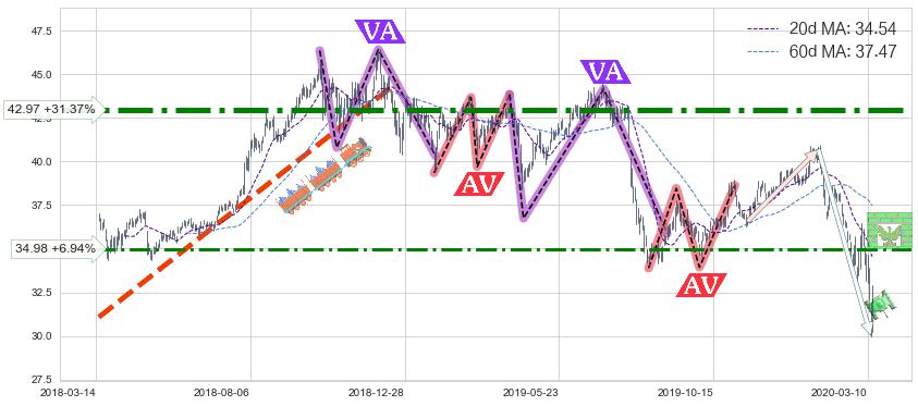 ♘ 阻力价格位34.98,可信任强度57.28%,距离最后交易2020-03-13形成的收盘价格32.71相差 +6.94%