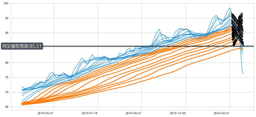 ➣ 90小时均线于(2020-03-04: 91.04)形成【死叉】基于【死叉历史模型】预测死叉后最低波谷价格: 84.56, 死叉后最低价格70.18,已经下跌超出预测最低波谷价格, 预期反弹