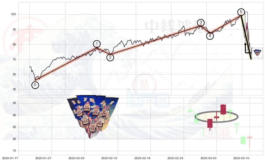 ➣ 波浪理论:猜想击穿破位c点后继续下跌 → 下跌 → 风险信号 → 小趋势跟踪