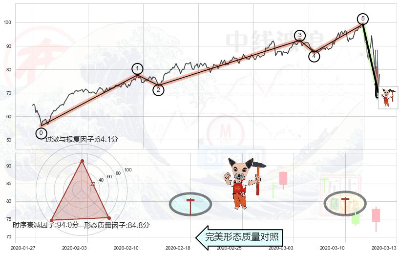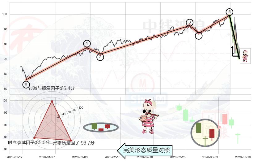 ➢ 🕰 价格走势在2020-03-06至2020-03-09期间形成吊颈线(上吊线),残存影响值:-4.93