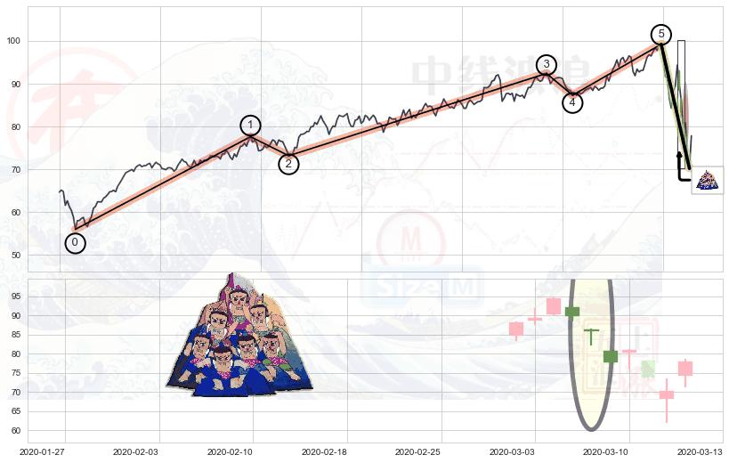 ➣ ['回调abc识别为: 【锯齿型调整浪】 ', '锯齿型:子浪535结构 ⓑ点振幅较小,ⓒ点继续发力远超ⓐ点结束位置']