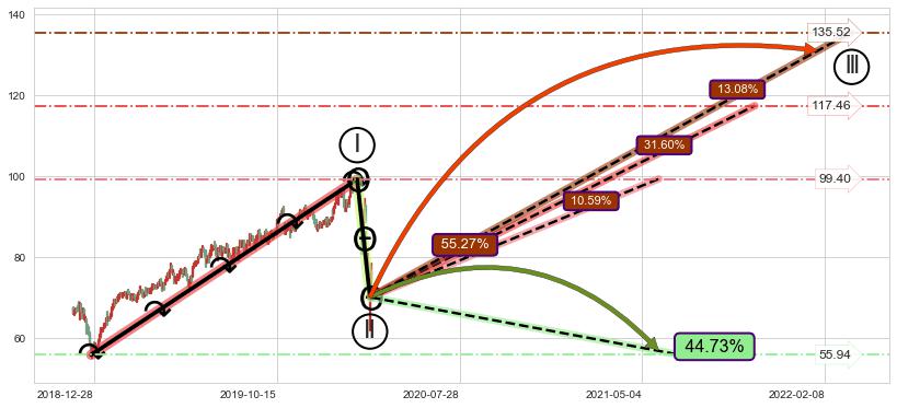 ➢ 吊颈线(上吊线) + 波浪理论击穿破位C点继续下跌信号叠加后【反向回撤率】极高,【看空】信号叠加【存续影响极小】