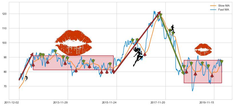 2012-07-02至2015-10-08 慢线与快线多次接触,存在上下穿越,有缠绕