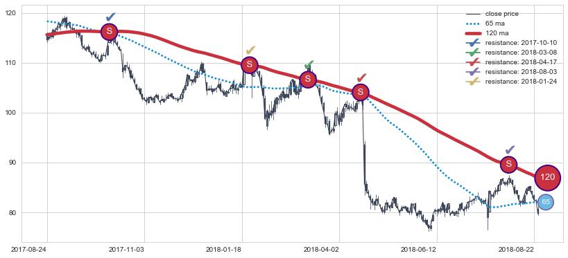 ➣ 历史趋势中共发现15处重要支撑阻力位,其中关键支撑位10处, 关键阻力位5处