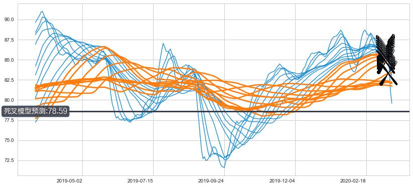 📉 多条均线基于【死叉历史模型】预测最低波谷价格的平均值: 78.59
