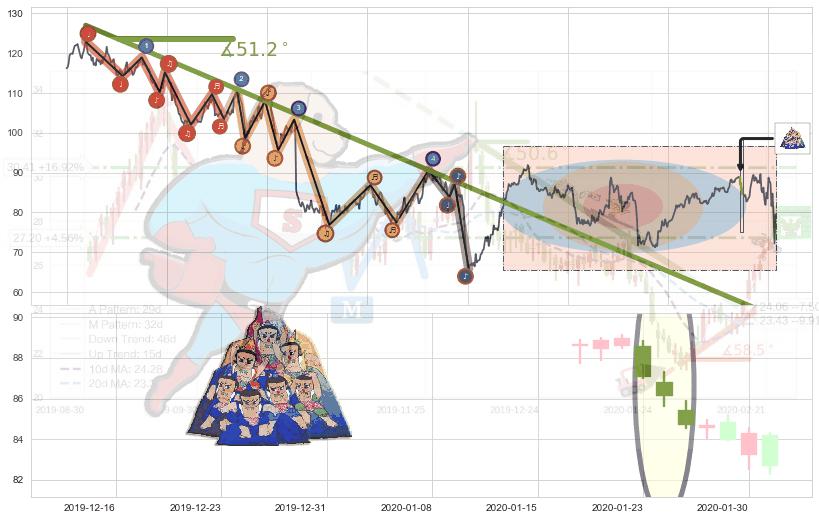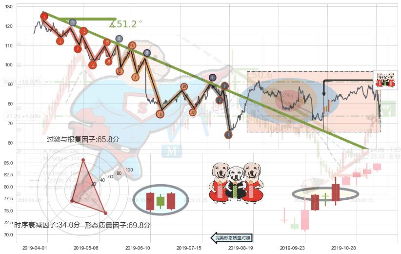 ➣ 2017-06-19-2019-03-20下跌趋势存在反转上涨[机会],其原下跌趋势的阻力位(53.80)已被突破[强支撑信号],原下跌趋势角度: 51.2˚