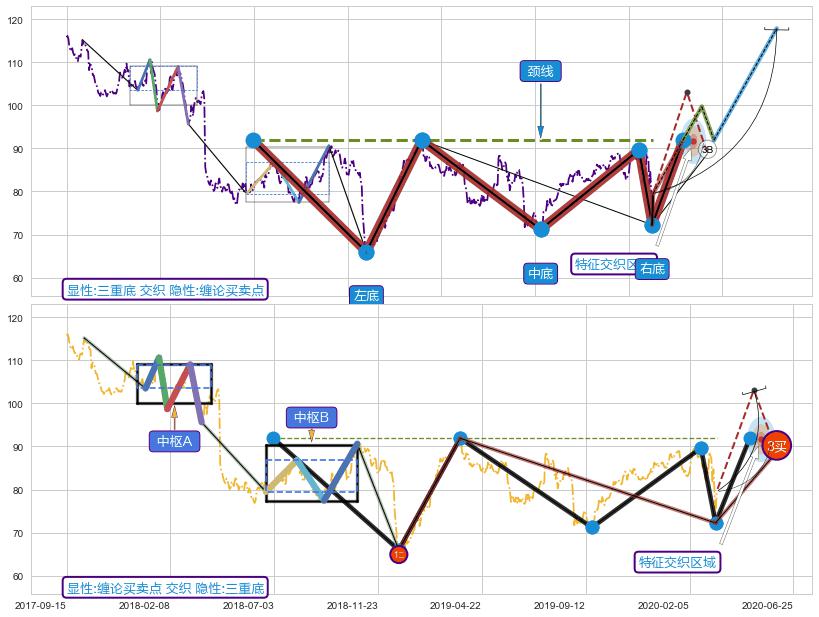 ➢ 三重底与缠论买卖点信号事件周期长度级别相同,同周期信号事件