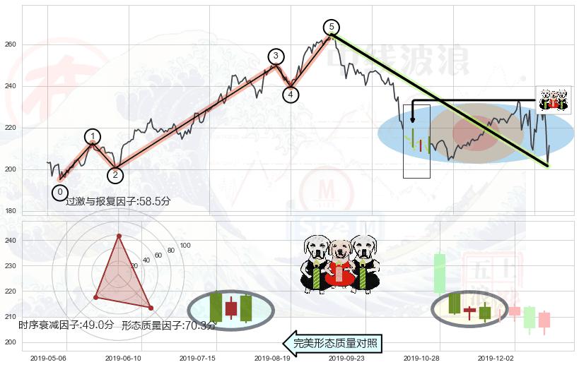 ➣ 循环浪继续向上【平均值】位置(2021-08-04, 281.58),匹配聚类样本比例59.00%, 可能性概率35.36%