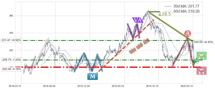 ♘ 阻力价格位208.74,可信任强度68.08%,距离最后交易2020-03-13形成的收盘价格211.34相差 -1.23%