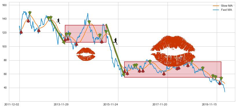 2013-10-09至2015-06-04 慢线与快线多次接触,存在上下穿越,有缠绕