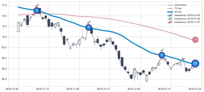 ➢ 最优均线组合共正确确认支撑阻力信号12处,正确确认率 75.00%