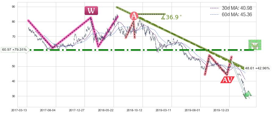 ♘ 阻力价格位60.97,可信任强度94.57%,距离最后交易2020-03-13形成的收盘价格34.00相差 +79.31%