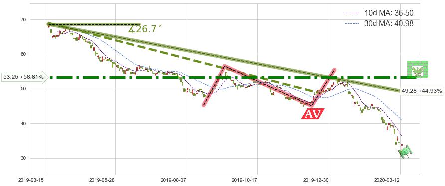 ♘ 阻力价格位53.25,可信任强度93.24%,距离最后交易2020-03-13形成的收盘价格34.00相差 +56.61%