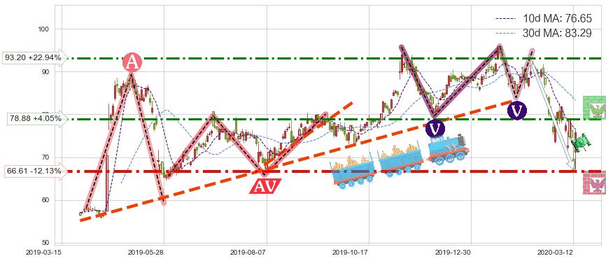 ♘ 阻力价格位78.88,可信任强度56.18%,距离最后交易2020-03-13形成的收盘价格75.81相差 +4.05%