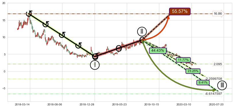 ➢ 循环浪继续向下【最低】位置(2020-07-20, -6.6147597),匹配聚类样本比例21.18%, 可能性概率9.41%