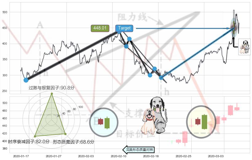 ♘ 支撑价格位331.20,可信任强度71.63%,距离最后交易2020-03-13形成的收盘价格465.55相差 -28.86%