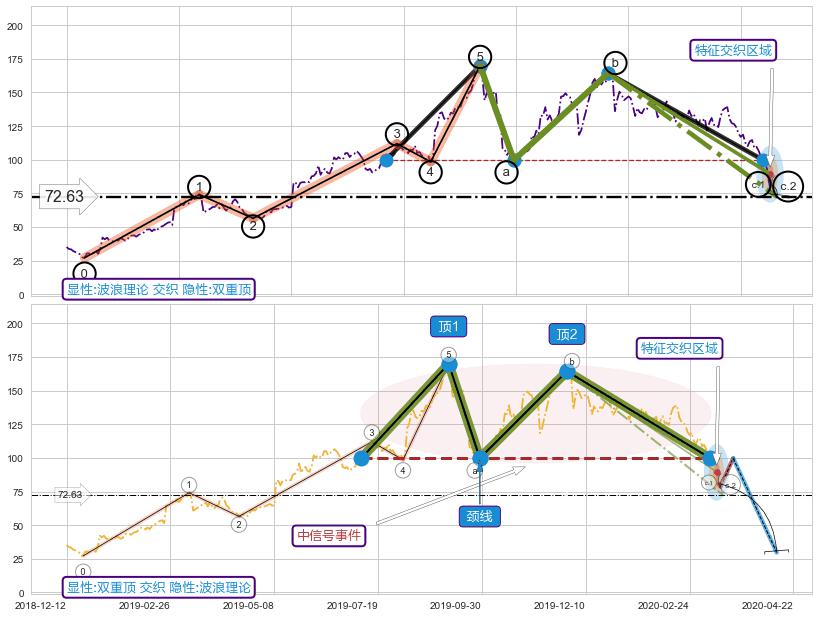 ➢ 双重顶属【中级别信号事件】波浪理论属【长级别信号事件】中长周期组合信号事件,中长事件长度比55.05%