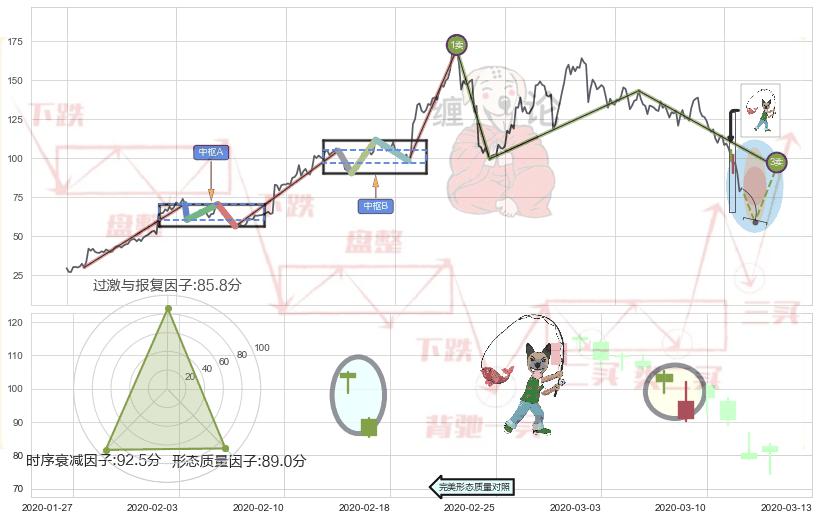 ➢ 🕰 价格走势在2020-03-13至2020-03-13期间形成锤头线(锤子线),残存影响值:7.15