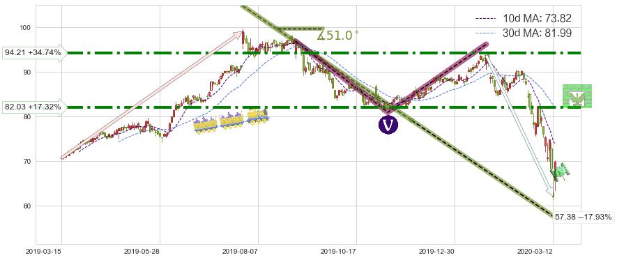 ♘ 阻力价格位82.03,可信任强度78.87%,距离最后交易2020-03-13形成的收盘价格69.92相差 +17.32%