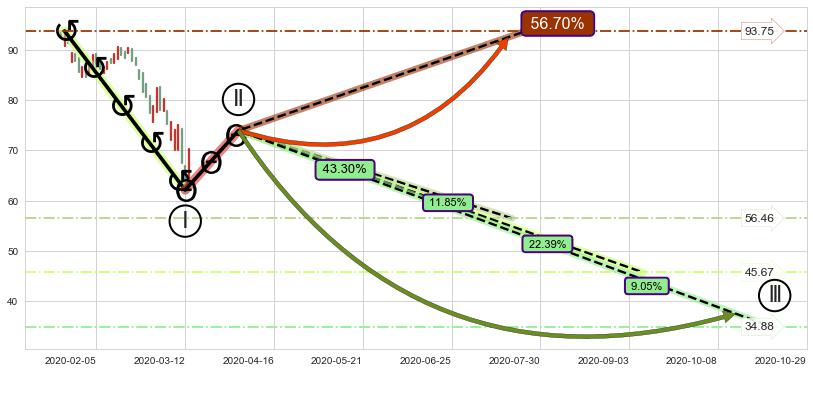 ➢ 高概率大级别循环下跌浪被破坏,反转向上(突破5浪起点)概率56.70%