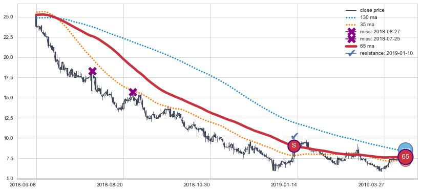 ➣ 35小时均线于(2018-06-06: 25.57)形成【死叉】基于【死叉历史模型】预测死叉后最低波谷价格: 21.04, 死叉后最低价格1.4900,已经下跌超出预测最低波谷价格, 预期反弹