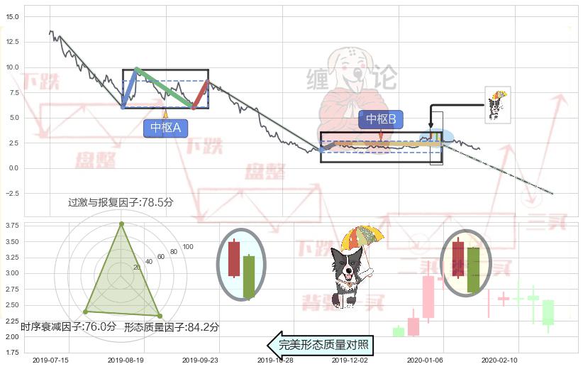 ➣ 下跌孤独十字星 + 缠论中枢点破位中枢B支撑下拉信号叠加后【信号初始稳固度】高,【看空】信号叠加【可信度影响大】