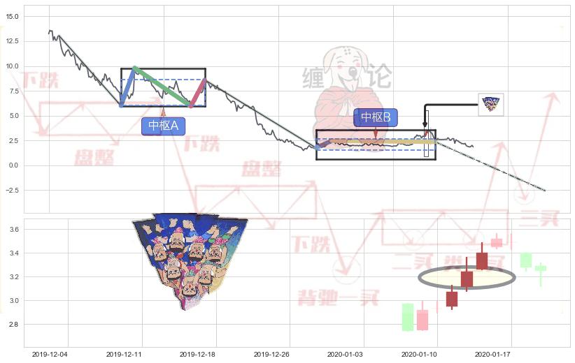 ➢ 缠论中枢点:猜想破位中枢B后持续下拉 → 下跌 → 破位中枢B支撑 → 持续趋势跟踪
