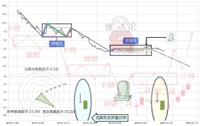 ➣ 下跌螺旋桨 + 缠论中枢点破位中枢B支撑下拉信号叠加后【目标达成率】低,【看空】信号叠加【存续影响大】