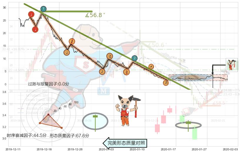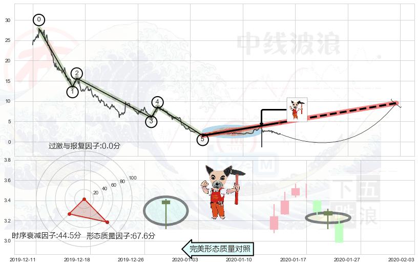 ➢ 🕰 价格走势在2020-01-22至2020-01-22期间形成锤头线(锤子线),残存影响值:2.25