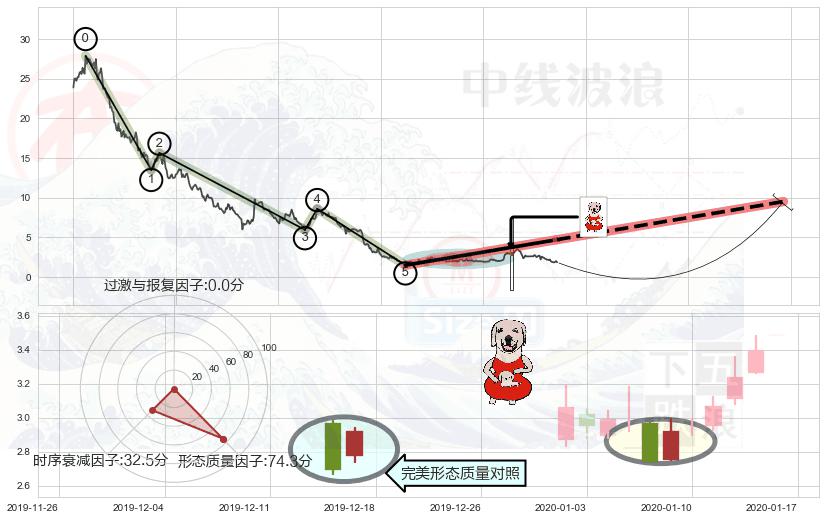 ➣ 曙光初现形态 + 波浪理论下跌浪:浪5反弹拐点信号叠加后【反向回撤率】低,【看多】信号叠加【存续影响大】