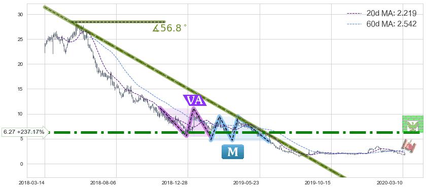 ⚔️ 2018-03-14-2020-03-13下跌趋势存在反转上涨[机会],其原下跌趋势的阻力位(-9.7753731)已被突破[强支撑信号],原下跌趋势角度: 56.8˚