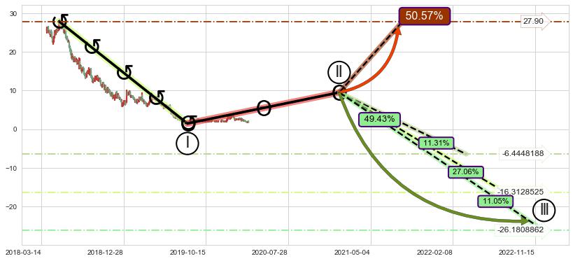 ➢ 循环浪继续向下【最低】位置(2022-12-14, -26.1808862),匹配聚类样本比例22.36%, 可能性概率11.05%