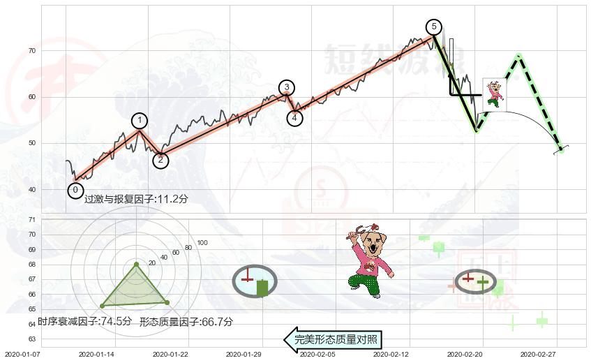 ➢ 🕰 价格走势在2020-02-19至2020-02-20期间形成射击之星形态,残存影响值:-3.65